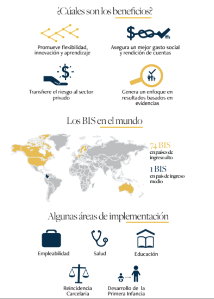 Este tipo de financiación busca incrementar la efectividad de la inversión social, la innovación del sector público, promover la flexibilidad para resolver problemáticas sociales y lograr una mejor asignación de los recursos públicos.